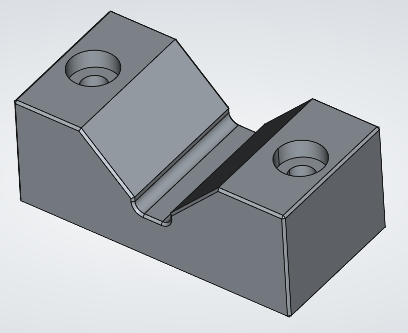 Im Prinzip wäre das Prisma nun fertig. Aber da es normalerweise auf einer Grundplatte befestigt wird, werden noch zwei Durchgangsbohrungen für Schrauben und Sacklochbohrungen für Stifte benötigt.