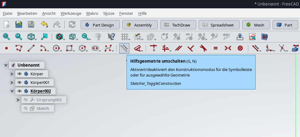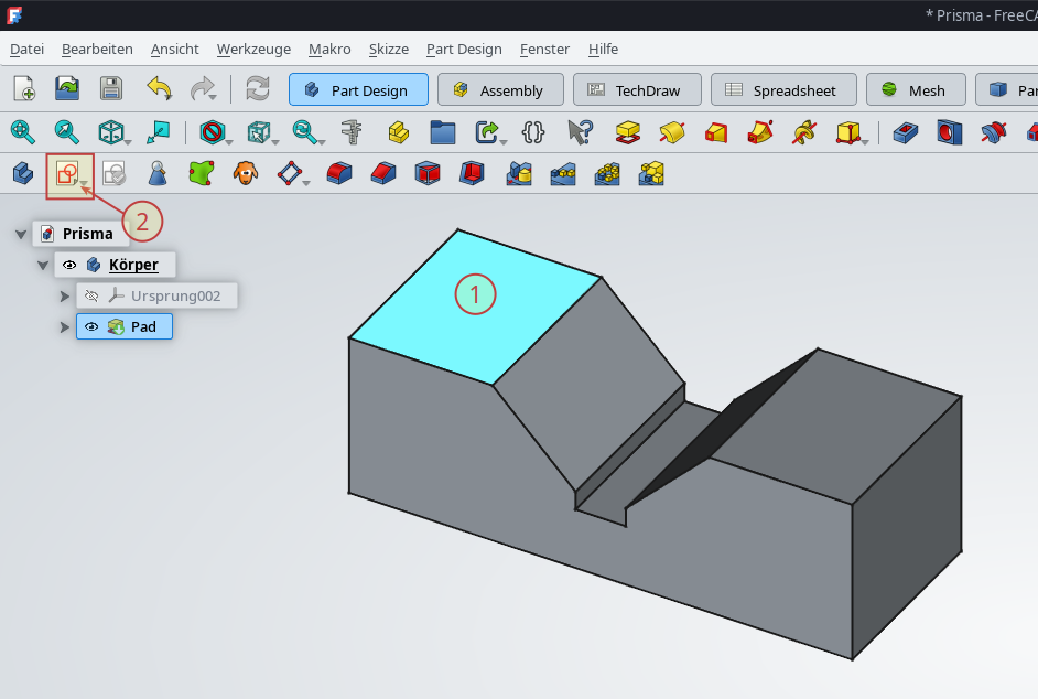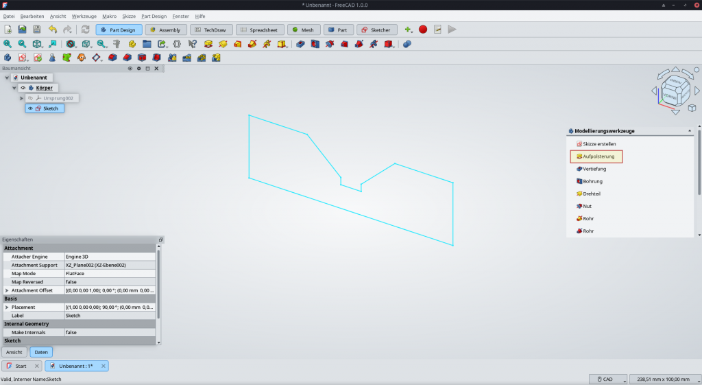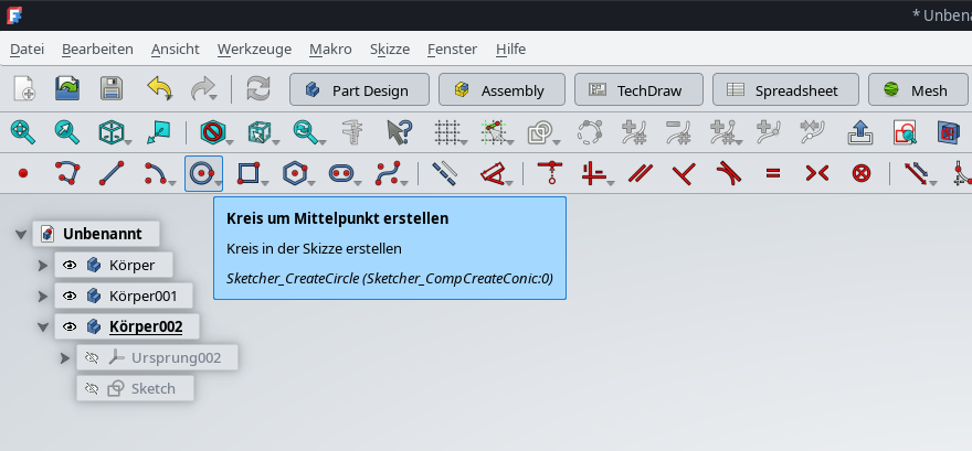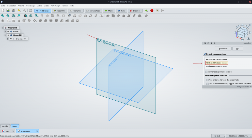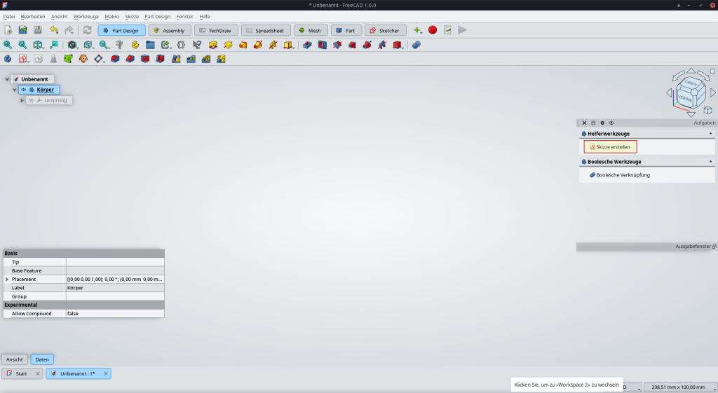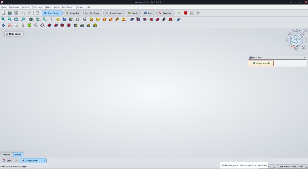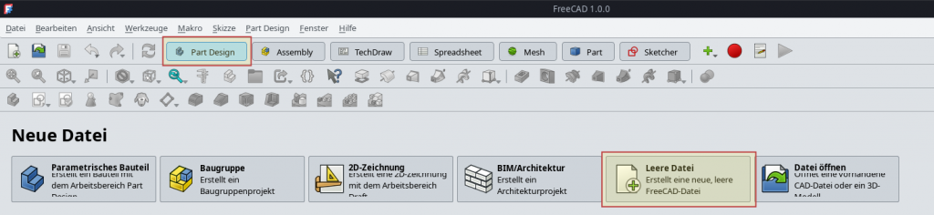 Begonnen wird mit einer leeren Datei in der Arbeitsumgebung „Part Design“