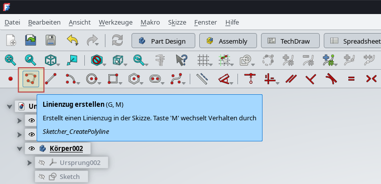 Für die Kontur des Bauteils bietet es sich an, das Linienzug-Werkzeug zu verwenden.