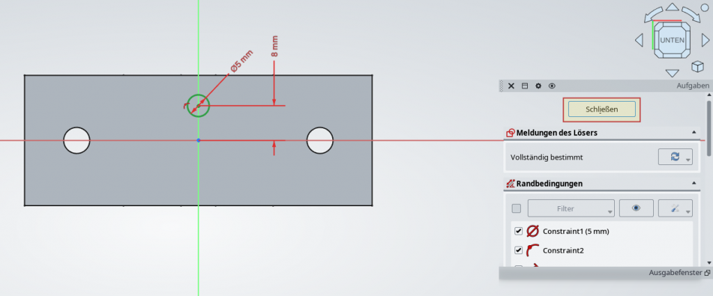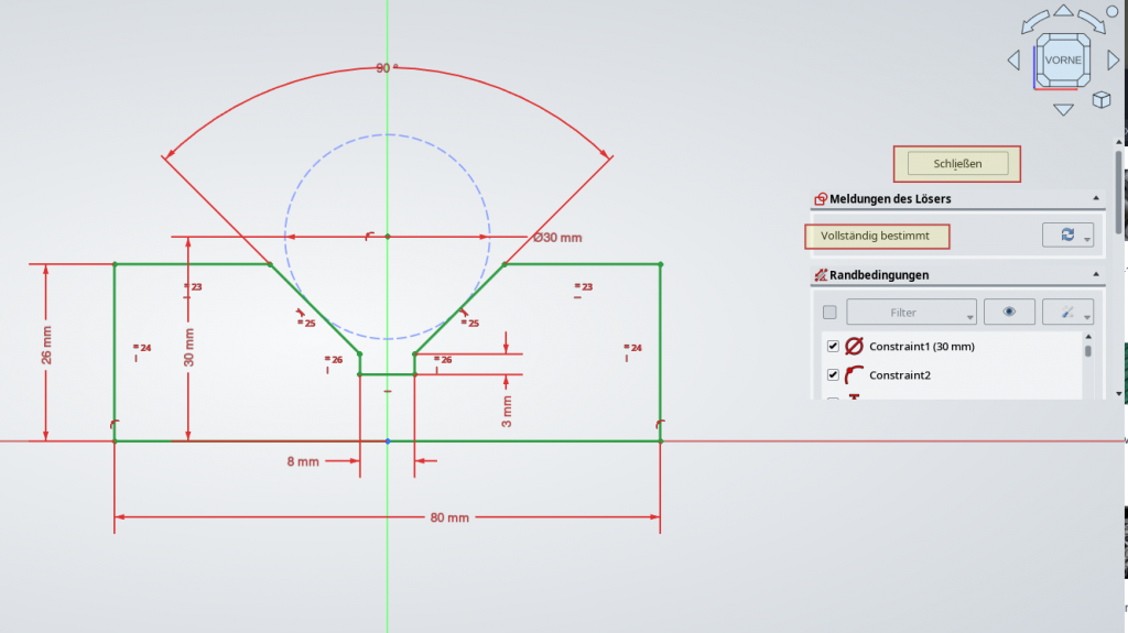 Jetzt ist die Skizze vollständig bestimmt, und kann mit „Schließen“ verlassen werden.