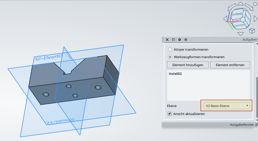 Diese Bohrung ist noch an der XZ-Ebene zu spiegeln.