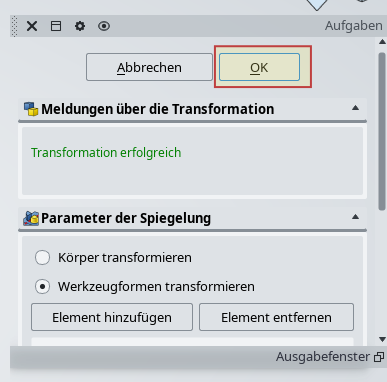 Der Spiegelbefehl wird mit „OK“ wieder verlassen.