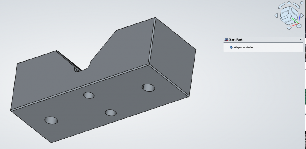 Zunächst wird also mit dem Befehl „Körper erstellen“ das Bauteil erzeugt.