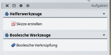 Es erscheint dann im Modellbaum und in der Aufgabenliste gibt es u.a. den Befehl „Skizze erstellen“