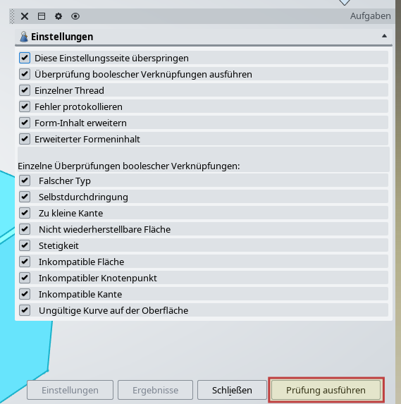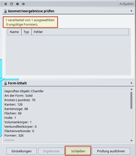Das Auflageprisma ist nun fertig! Jetzt sollte die Geometrie noch überprüft werden. Dazu das letzte Feature im Featur-Baum anklicken und auf „Geometrie überpürfen“ klicken