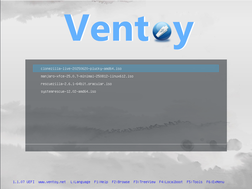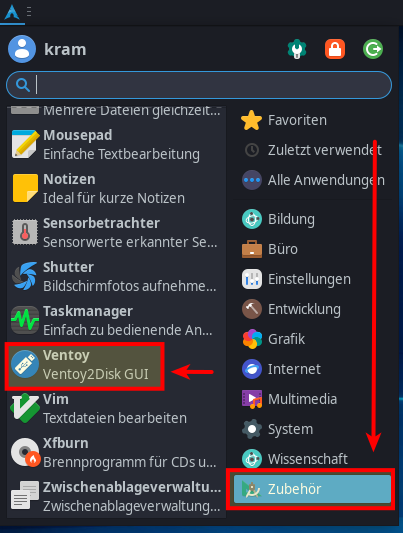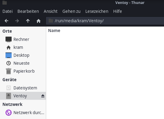 Wenn Ventoy korrekt installiert ist, sollte dieses als Menüpunkt verfügbar sein.