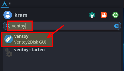 oder im Suchfeld einfach ‚Ventoy‘ eintippen und das entsprechende Icon anklicken