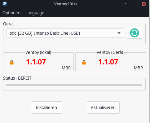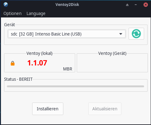 Im Ventoy2Disk-Tool wird dann auch die aktuelle Version des gerade erzeugten Ventoy-Sticks angezeigt.