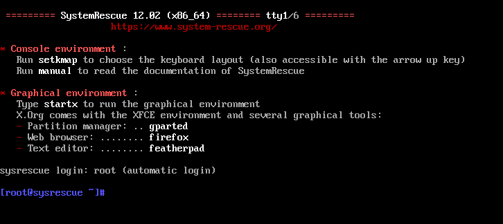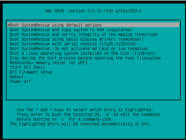 Zum Beispiel kann im Menü dann ‚SystemRescue‘ ausgewählt werden und das entsprechenden Rettungsmedium gestartet werden.
